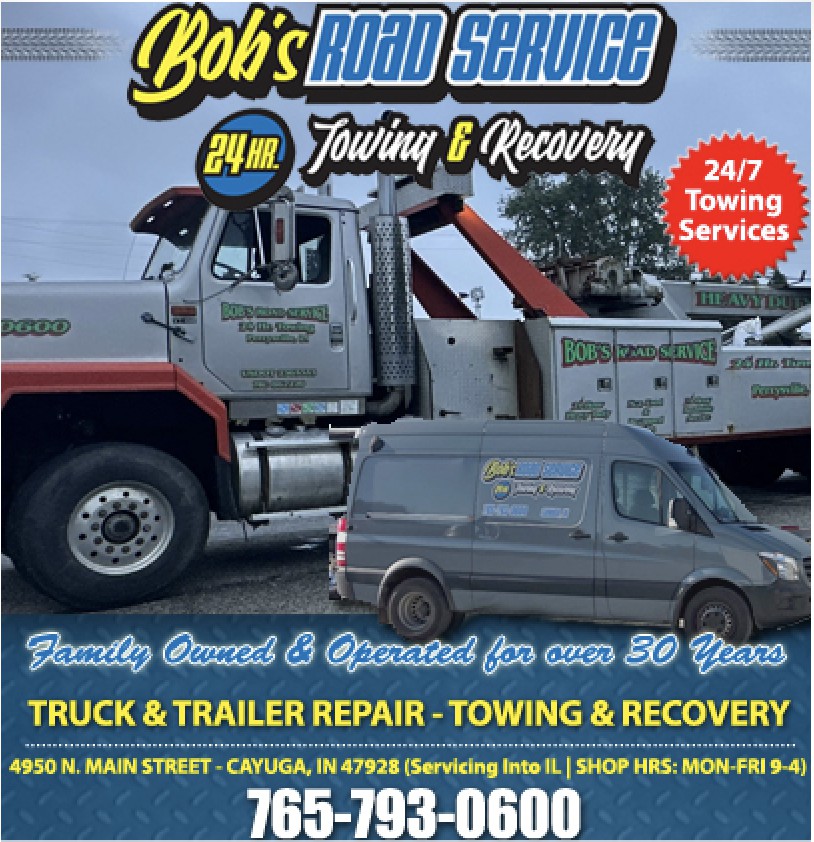 We are located in Cayuga, IN. We provide 24/7 Mobile Roadside Service and Towing, available within a 150-mile radius. We also offer a full shop facility. Our shop hours are 9a to 4p, M-F. Our services include:
