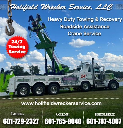 Holifield Wrecker Service is your trusted towing partner since 1979, with three locations in Laurel, Collins & Heidelberg Mississippi!