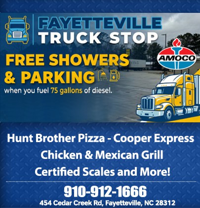 We are located in Fayetteville, NC. We are open 24/7 for all your traveling needs. FREE PARKING AND SHOWER WITH 60 GALLON FUEL PURCHASE! We offer the following services:
